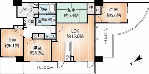 | バルコニー面積 | 37.64m2(11.38坪) 北西向き | ||