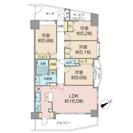 | バルコニー面積 | 10.77m2(3.25坪) 南東向き | ||