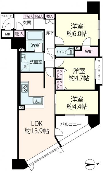 | 所在階 | 13階 | 構造/階建 | RC造 地上15階建て |