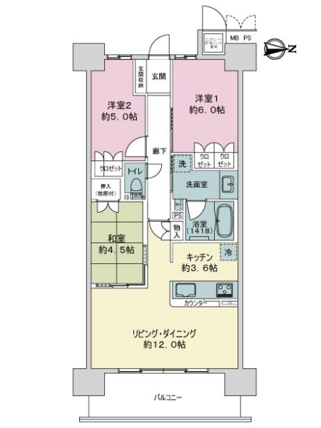| バルコニー面積 | 11.02m2(3.33坪) 東向き | ||