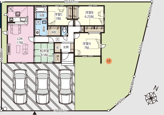 ■車3台並列駐車可能(車種による)