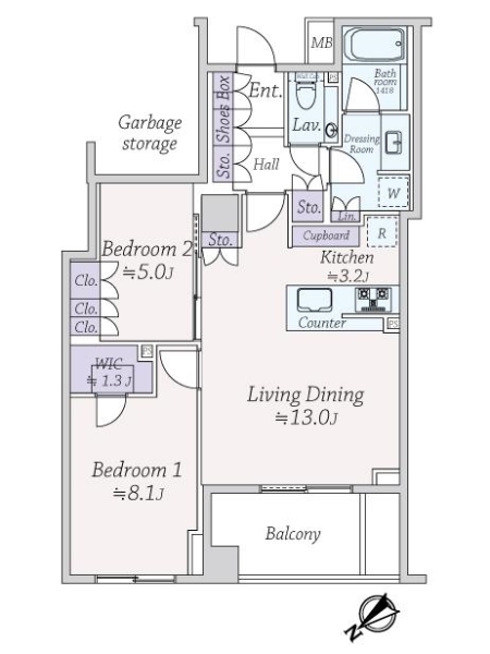 | バルコニー面積 | 6.86m2(2.07坪) 北西向き | ||