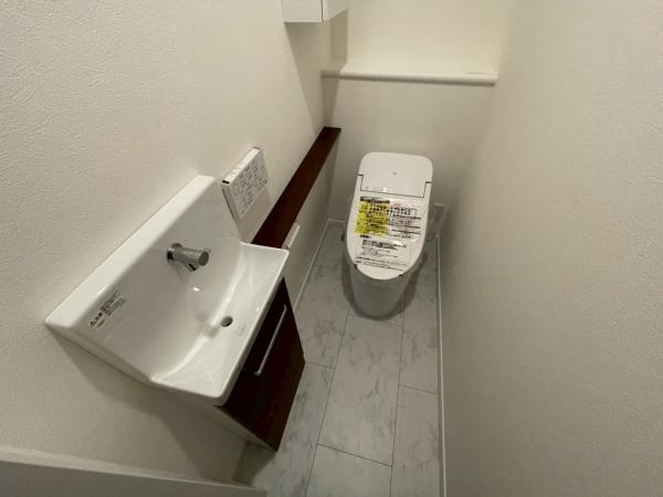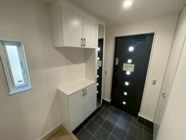 | 設備 | 都市ガス / 公営水道 / 汚水:公共下水 / 雑排水:公共下水 / ユニットバス / ユニットバストイレ / ガスコンロ / 電気:あり 閑静な住宅地 / 前道6m以上 / 平坦地 / 2階建 / LDK18畳以上 / バリアフリー / フローリング / 全居室フローリング / リビング階段 / 全居室収納 / クローゼット / シューズボックス / 納戸 / システムキッチン / 対面式キッチン / 食器洗乾燥機 / 浄水器 / キッチン床暖房 / 浴室乾燥機 / 浴室に窓 / 浴室暖房 / 浴室1坪以上 / シャワー付洗面化粧台 / トイレ2ヶ所 / 温水洗浄便座 / 室内洗濯機置場 / 洗濯機置場有 / バルコニー / 南面バルコニー / 太陽光発電システム / TVモニタ付インターホン / ディンプルキー / 火災警報器(報知器) / 小学校 徒歩10分以内 / 公園 400m以内 / 都市ガス |