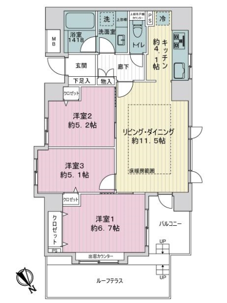 | 専有面積 | 71.04m2(21.48坪) | ||