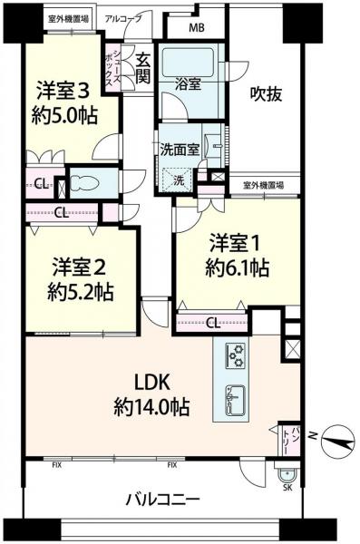 | バルコニー面積 | 13.30m2(4.02坪) 西向き | ||